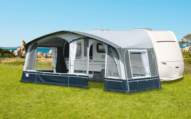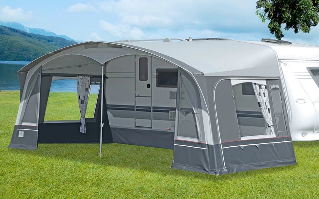 Mit dem Brand Arcade Caravan Vorzelt bieten wir Ihnen in der 4. Generation noch weitere Nutzungsvorteile. Die Vorderwand ist als Wechselwand konzipiert, somit sind zwei verschiedene Türpositionen möglich. Neben den großzügigen Lüftungsfenstern in der Vorderwand sind nun auch die Seitenwände sind mit verschließbaren Gazelüftungen ausgestattet. Das Dachgewebe ist metallic-beschichtet und auf der Innenseite dekorativ bedruckt.