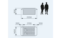 - Air-Frame-Technologie: Zelte mit Einpunkt-Aufblassystem werden von nur einem externen Aufblaspunkt aus aufgeblasen.