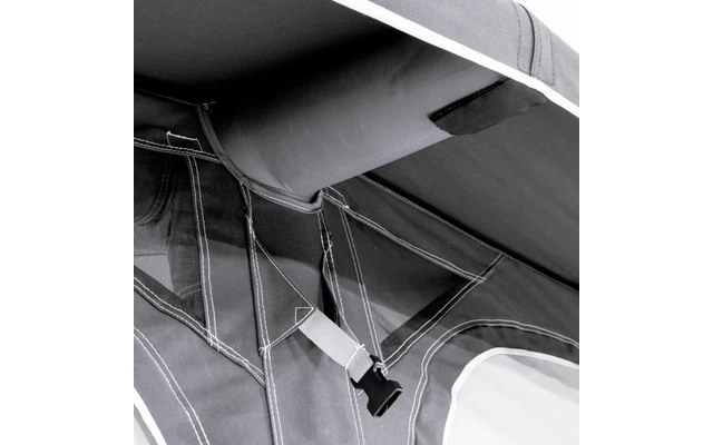 Zur Gewichtsreduzierung und zum Ăffnen des Vorzelts können die Front- und Seitenteile mithilfe eines ReiĂverschlusses abgenommen werden. - Aufblasbares Vorzelt: