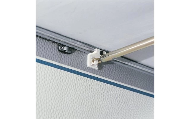 Vario Clip Hält das Zelt ohne Schrauben am Wohnwagen und sorgt für Stabilität.