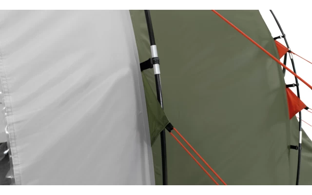 - Flexibles Gestänge: Zelt, Vorbau und Erweiterung werden von Fiberglasstangen gestützt.