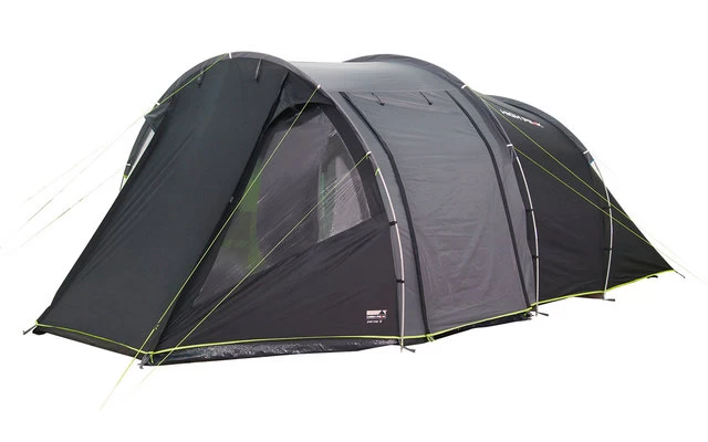 Familien-Tunnelzelt in Stehhöhe. Der große Vorbau mit Gaze-Seitentür und Gazefenster kann optimal belüftet werden und bietet reichlich Platz für die Campingausrüstung und Aufenthalt bei schlechtem Wetter. Klarsichtfolienfenster bringen das Tageslicht in die Wohnung und die Gardinen schützen vor neugierigen Blicken. Der pflegeleichte Zeltboden, am Innenzelt angenäht, kann sich nicht verschieben. Die Faulstreifen halten Schmutz und Feuchtigkeit ab. 3 Dauerventilationen belüften das Zelt bei jeder Wetterlage optimal und müssen immer geöffnet sein. Das Zelt hat extra starke Reißverschlüsse und reflektierende Abspannschlaufen für mehr Sicherheit. Die sehr stabilen 5 mm Durchmesser Stahl-Erdnägel verbiegen sich auch bei hartem Untergrund nicht. Für die Abspannung werden spezielle 5 mm Stahl- Erdnägel mit Haken für besseren Halt der Spannleinen geliefert. Die Reißverschluss ‚Abdeckung ist mit einer zusätzlichen Regenrinne ausgestattet.